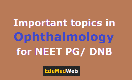 Here we have listed the important & high yield topics of Ophthalmology (Eye) for NEET- PG, AIIMS, DNB and other Medical PG Entrances.